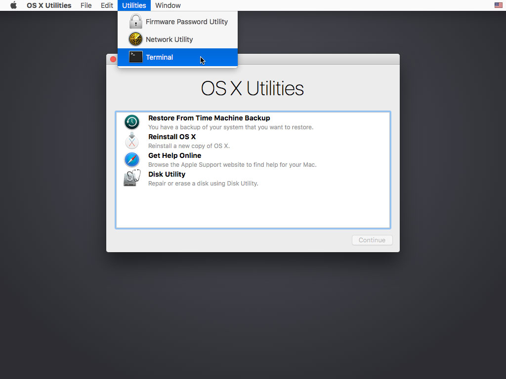 1.关机,然后重新启动你的Mac电脑,在开机时一直按住Command+R迸入Recovery模式。