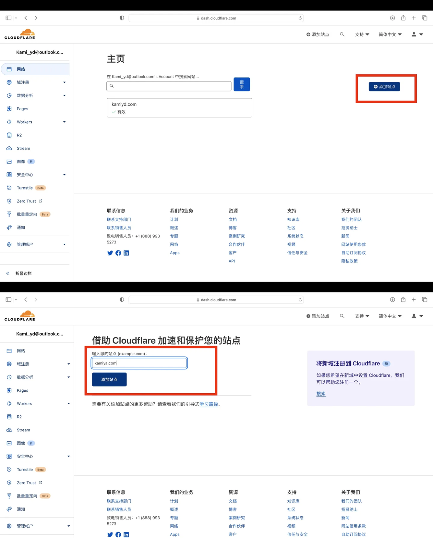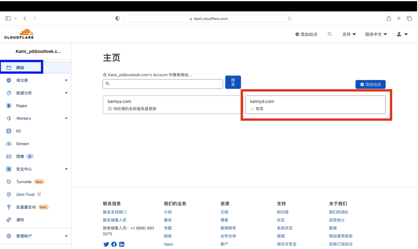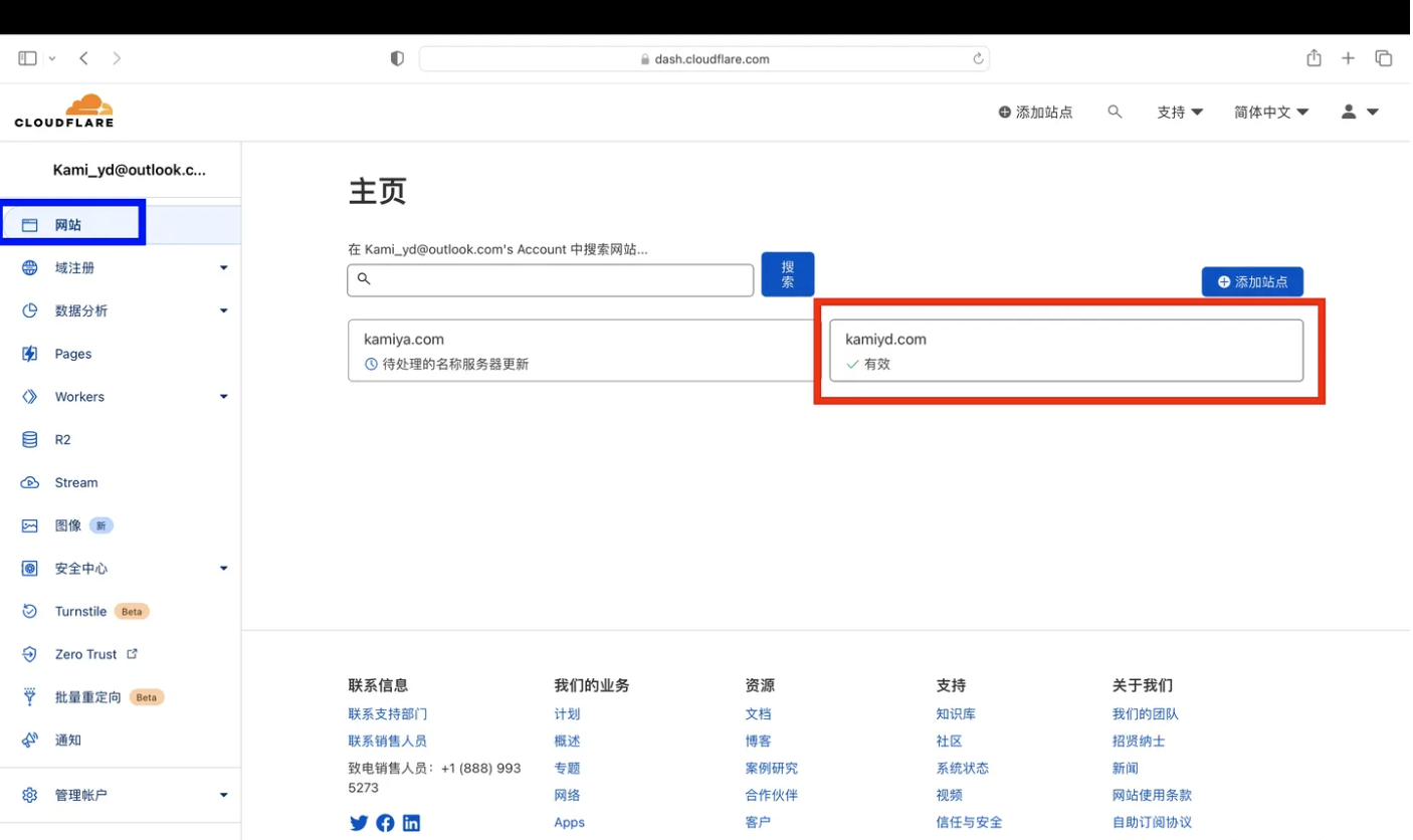 接下来就是如何转移到Cloudflare和部署了,过程涉及到几个网页的跳转操作,比较复杂,我将它分为几个小节点一步步来。