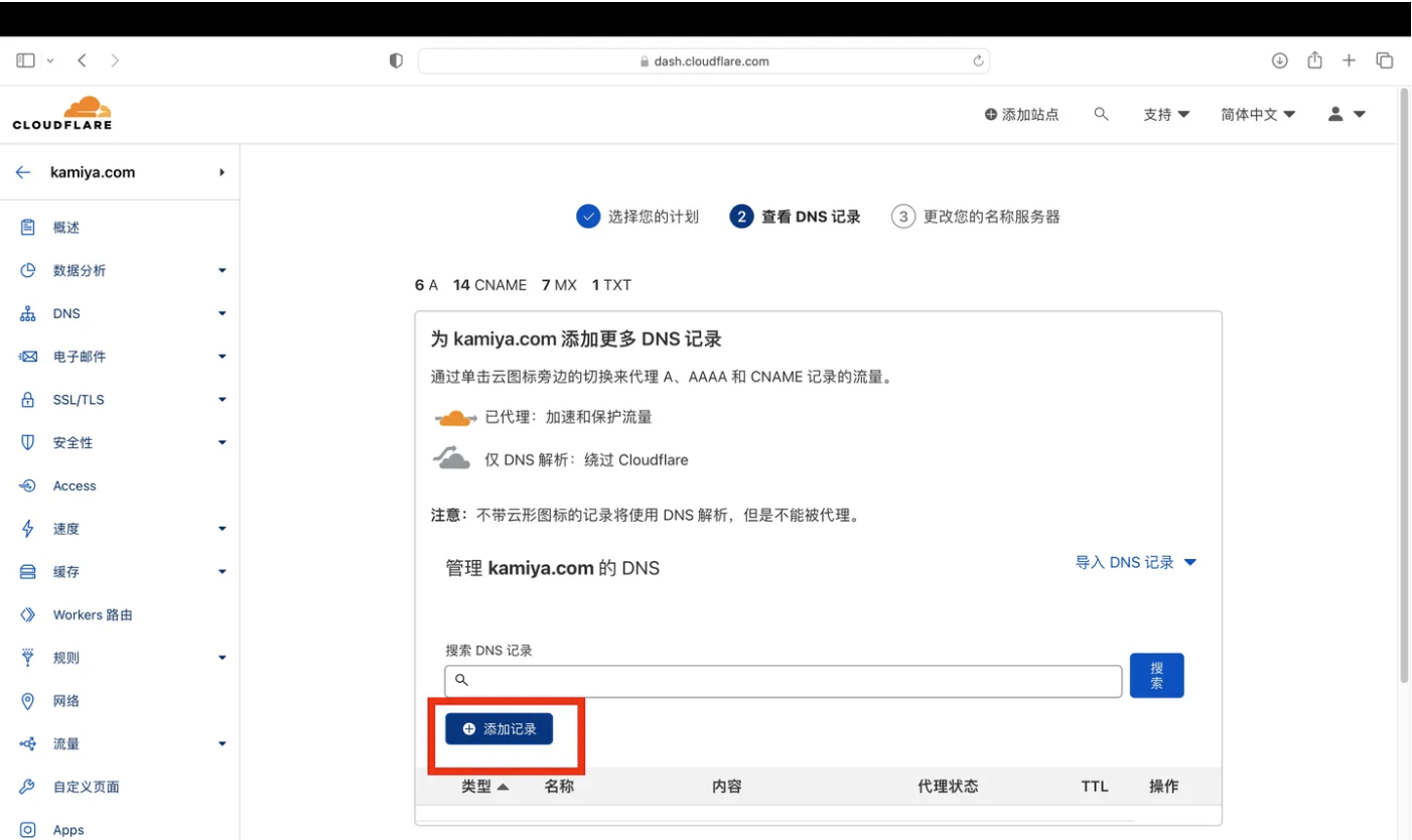 - 回到Cloudflare,点击添加好的网站