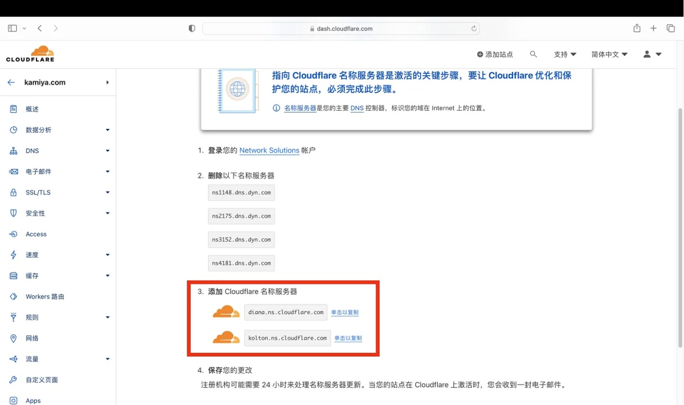 - 出现这个界面,我们只看“3.添加Cloudflare名称服务器”