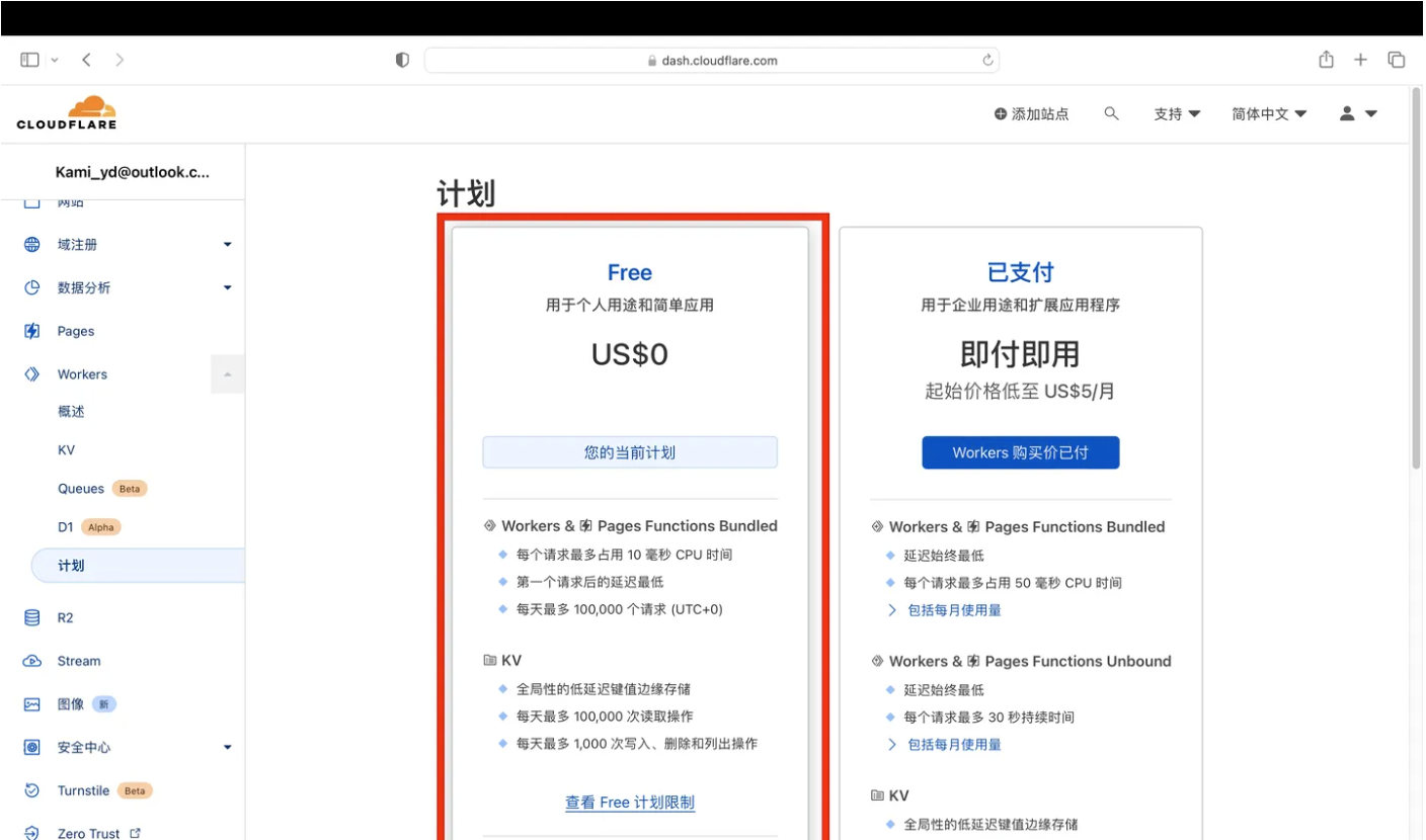 - 完成后出现这个界面,继续选择“Free”计划