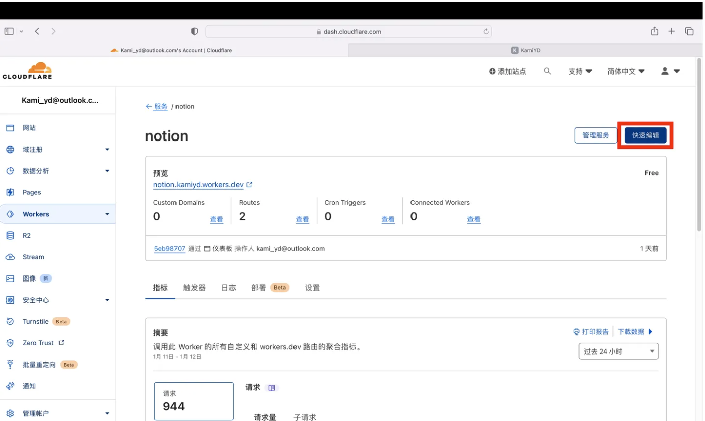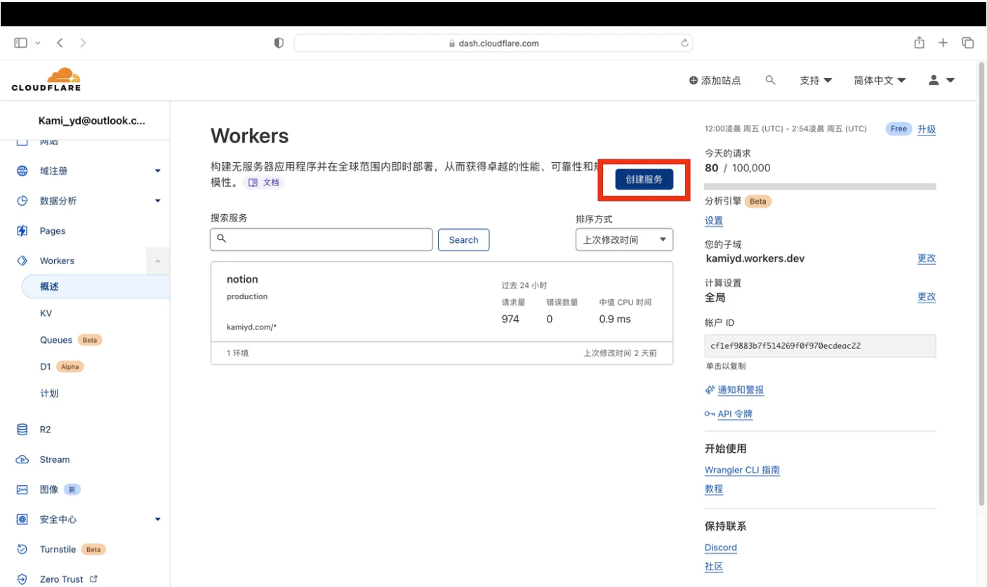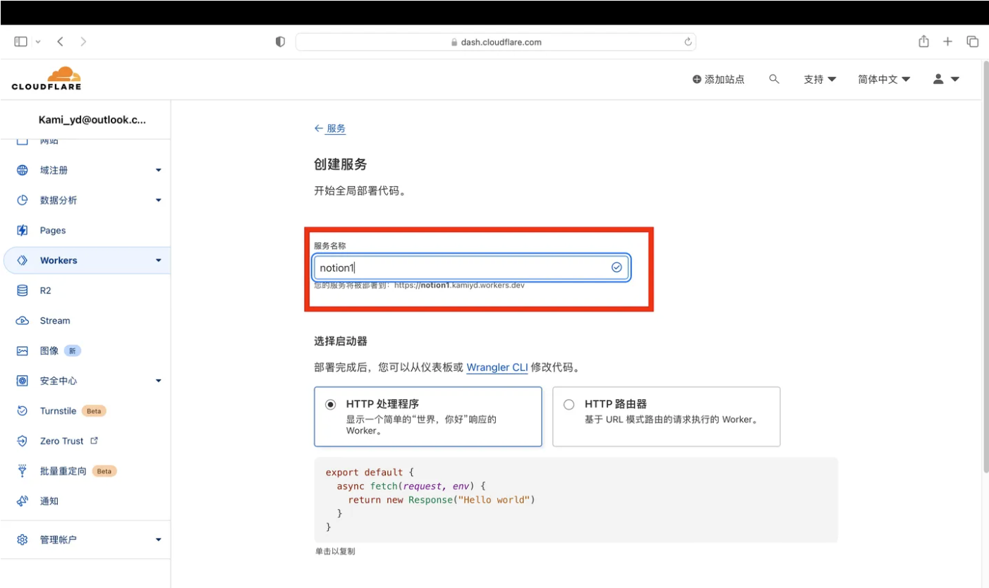 - 服务选创建的Workers服务名称(我上面提到的“notion”)
